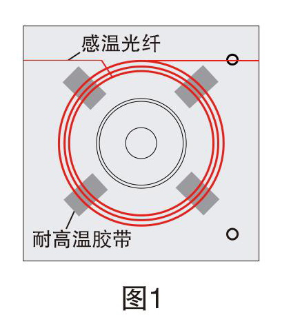 光纖直接固定在連接處上(shàng)蓋表面,盤繞3圈光纖。耐高(gāo)溫膠帶固定。考慮到布線統一性及後續校(xiào)準調試,每個(gè)連接處的感溫光纖安裝長度一緻。如圖1所示: