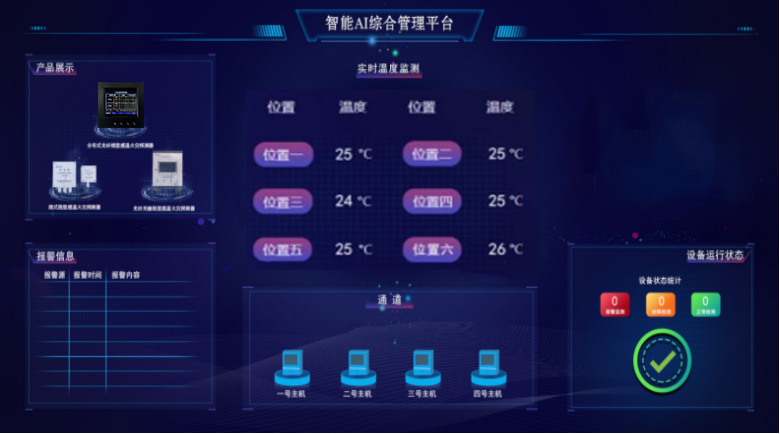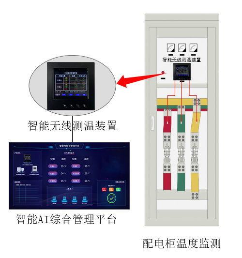針對開(kāi)關櫃運行(xíng)時(shí)動、靜接頭處過熱,進、出線銅排處漏電(diàn)、灰塵腐蝕産生(shēng)靜電(diàn)短(duǎn)路等導緻溫度升高(gāo),從而可(kě)能引發火(huǒ)災隐患等問題,河(hé)北安探智能科技(jì)推出智能AI綜合管理(lǐ)平台,通(tōng)過智能無線測溫系統監測低(dī)壓開(kāi)關櫃內(nèi)進、出線銅排和(hé)動、靜觸頭的溫度變化信息,并将監測信息上(shàng)傳至智能AI綜合管理(lǐ)平台集中顯示。